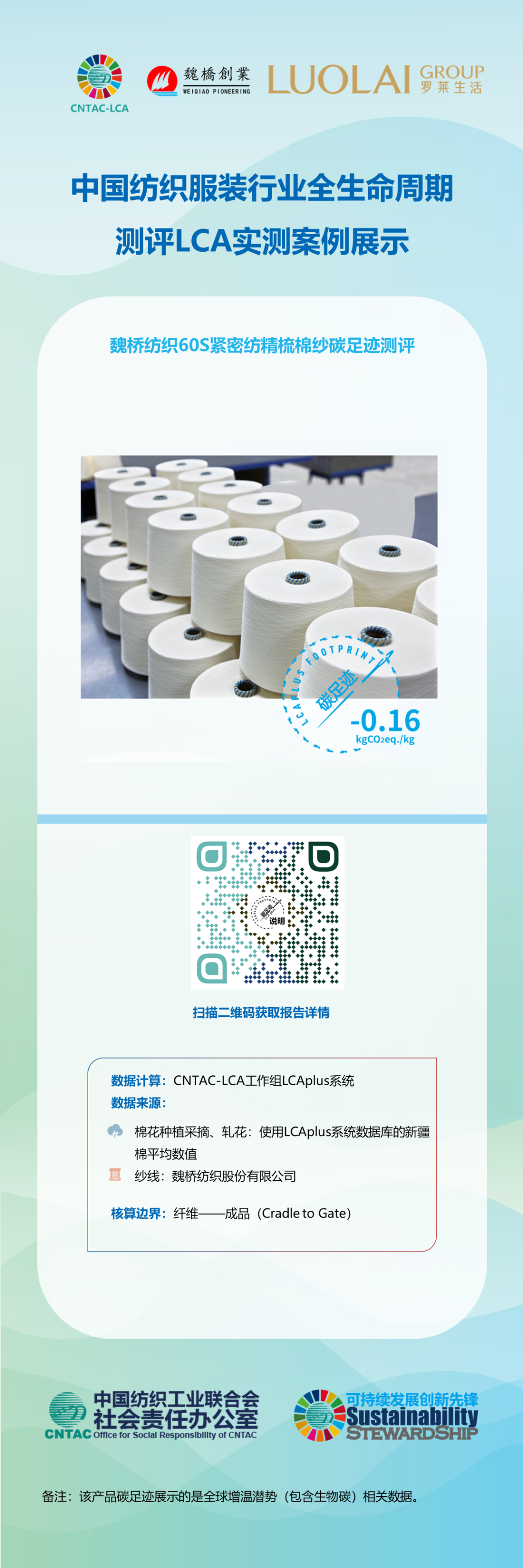 为响应国家号召,中国纺织行业也正在积极行动。2020年5月,中国纺联社责办正式启动可持续纺织品“全生命周期评价”项目,联合一批中国纺织服装行业领军企业展开了产品全生命周期评价工作。